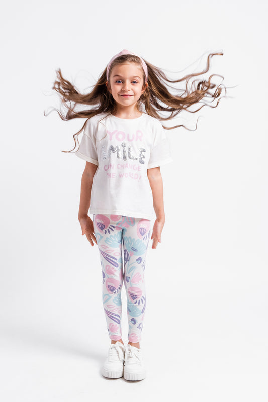 Cherubino "Soft Petals" Cozy Watercolor Floral Leggings for Girls