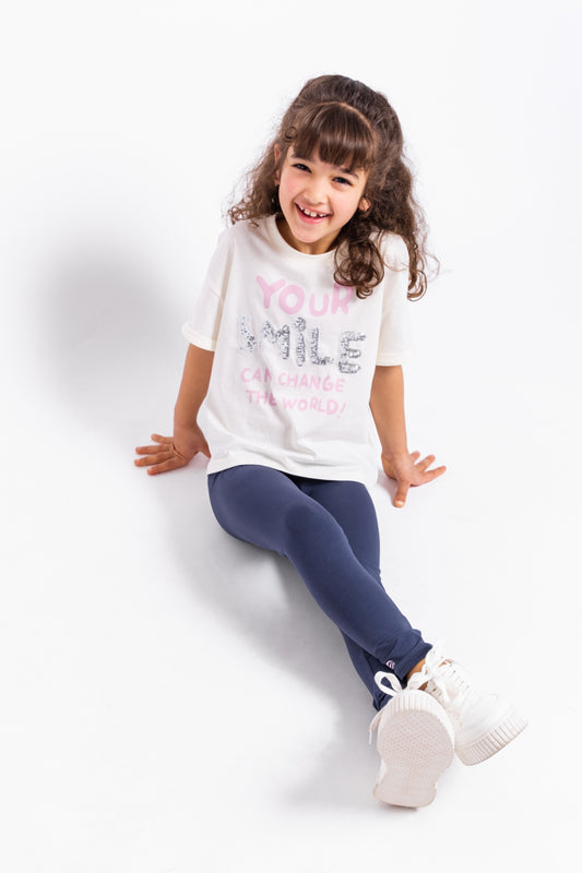Girl Dark Blue Leggings with Sweet Kitten Print