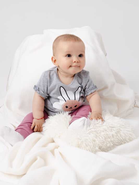 Two Piece Chenille (Koala) Embroidery Flutter Sweatshirt & Jogger Set - Raspberry