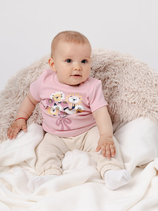 Short Sleeve Flutter Trim Dress with (Baby Kiss) Graphic - Ecru