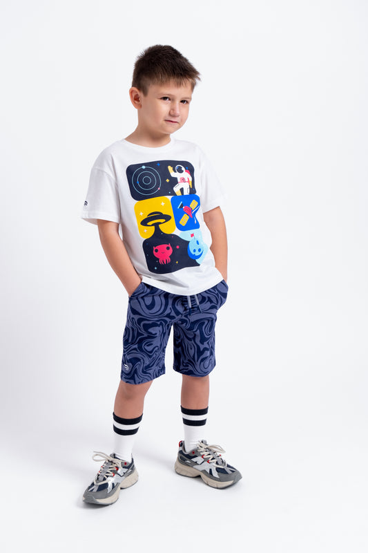Shorts with Drawstring Waistband in (Galaxy) Pattern - Grey