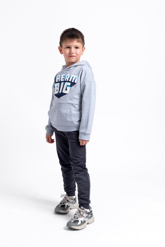 Hoodie Sweatshirt with (Dream Big) Glow-in-the-Dark Phrase - Grey