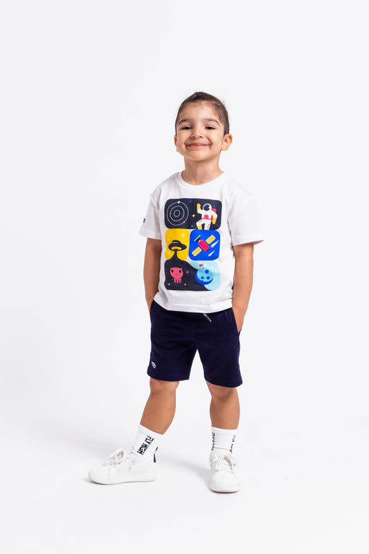 Short Sleeve Baseball T-Shirt with (Astronaut) Glow-in-the-Dark Graphic - White