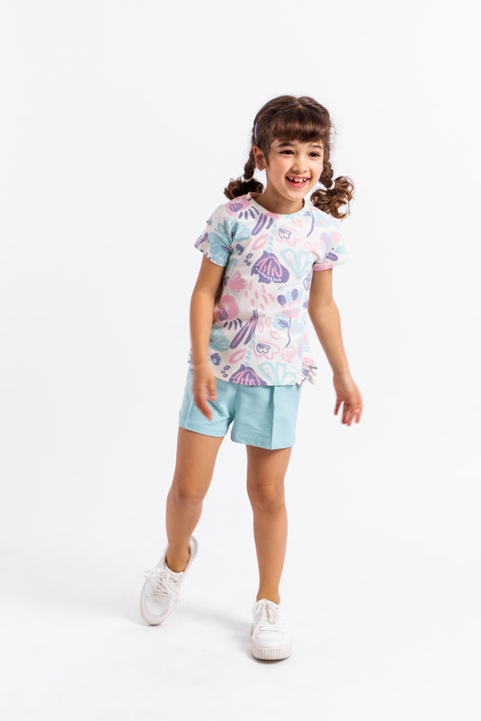 Patterned Short Sleeve T-Shirt (in Heart Graffiti) - Multicolor