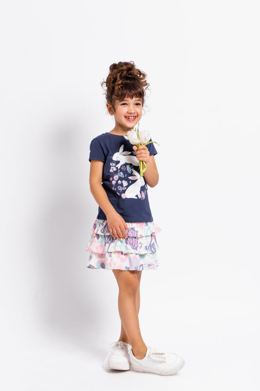 Short Sleeve T-Shirt with (Bunny Meadow) Graphic - Pink