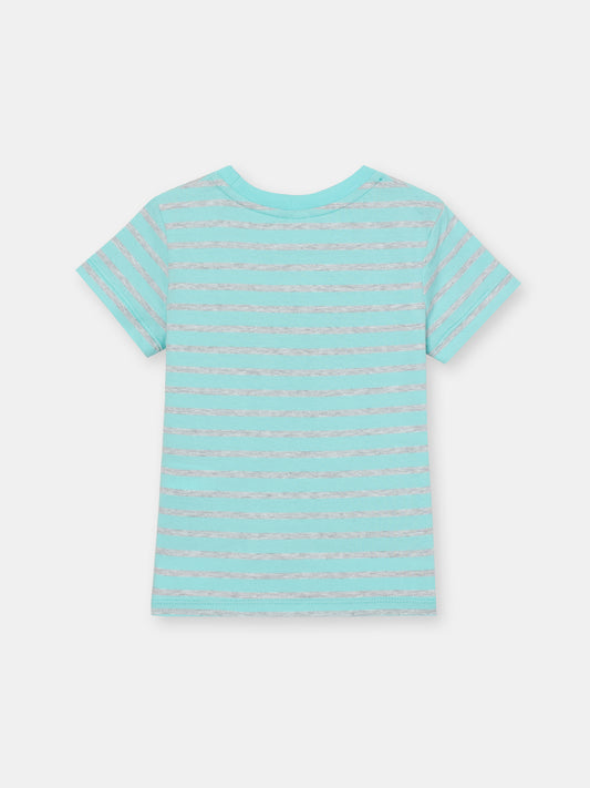 Cherubino Girls' Sparkly Cat Striped T-Shirt in Atlantis– Cute and Comfy for School and Play