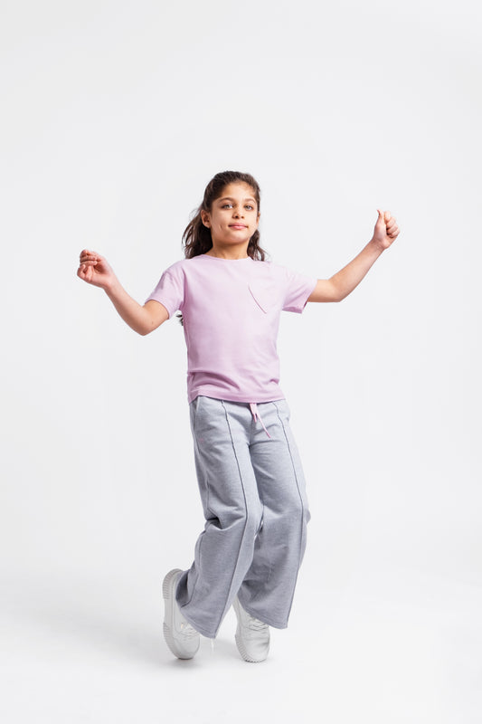 Solid Short Sleeve T-Shirt with Heart Pocket - Pink