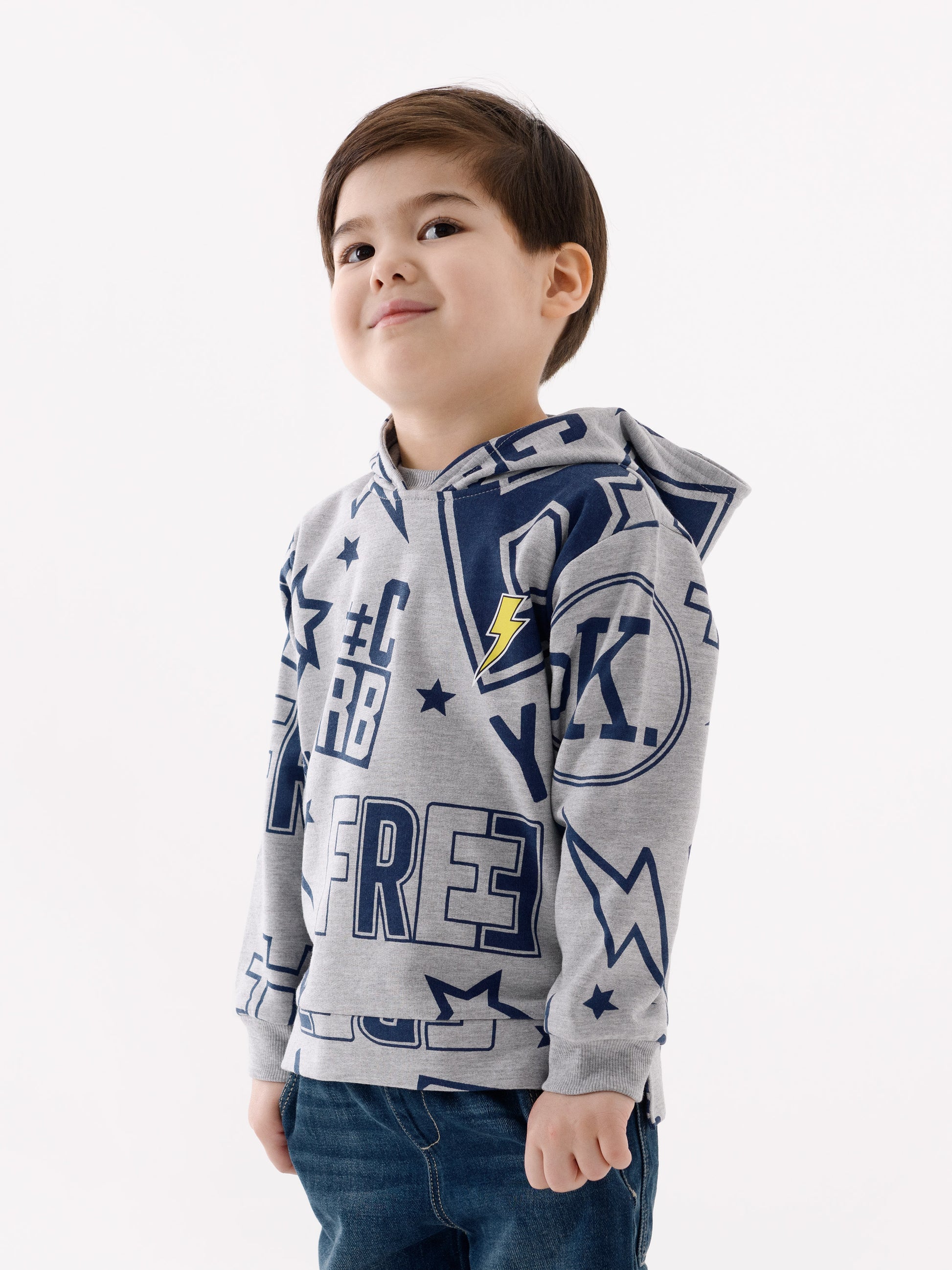 Hoodie Sweatshirt in Stickers Pattern - Grey