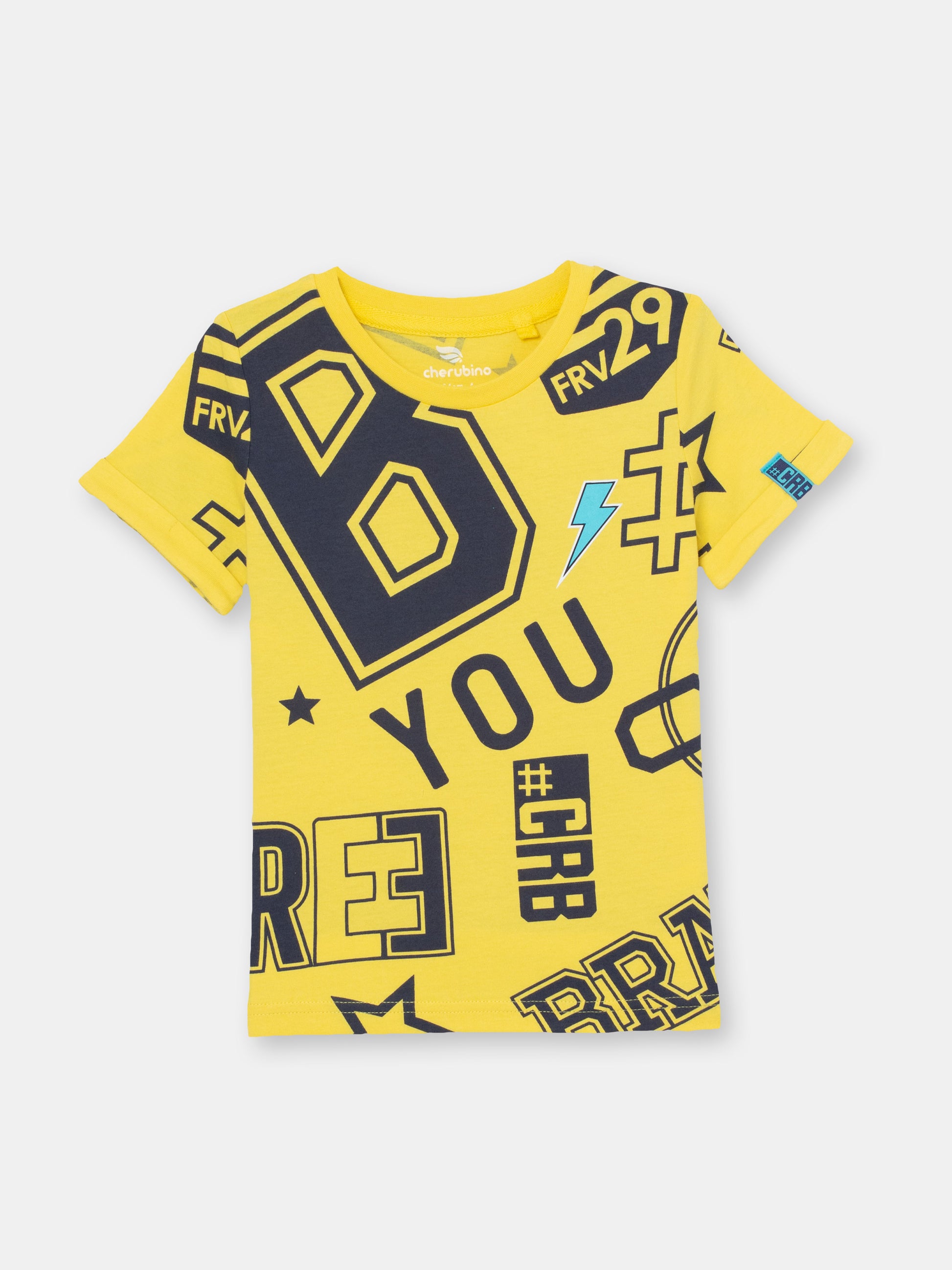 Cherubino Boys' Back-to-School Graphic T-Shirt in Yellow – Comfy Top for School, Play, and More