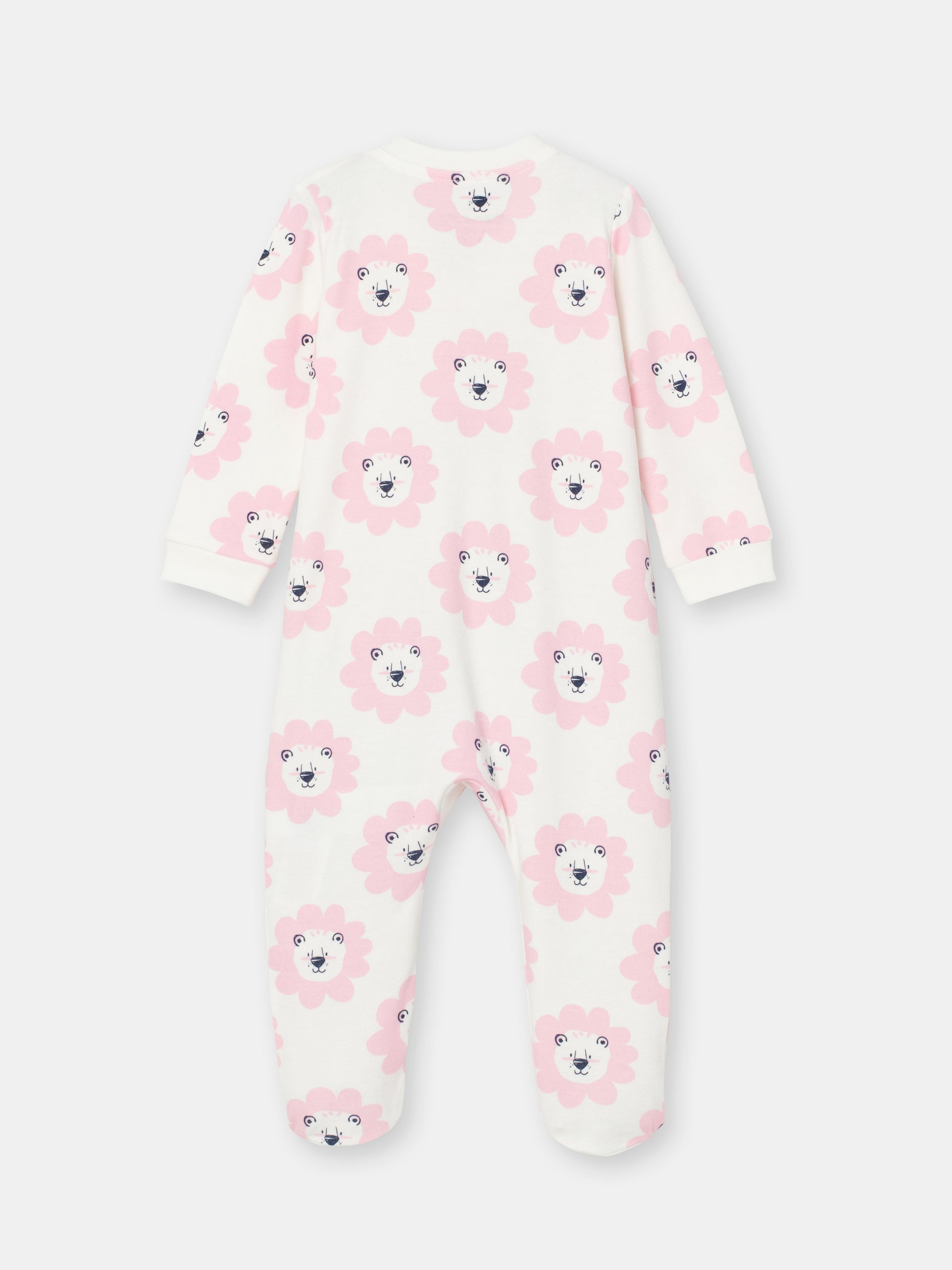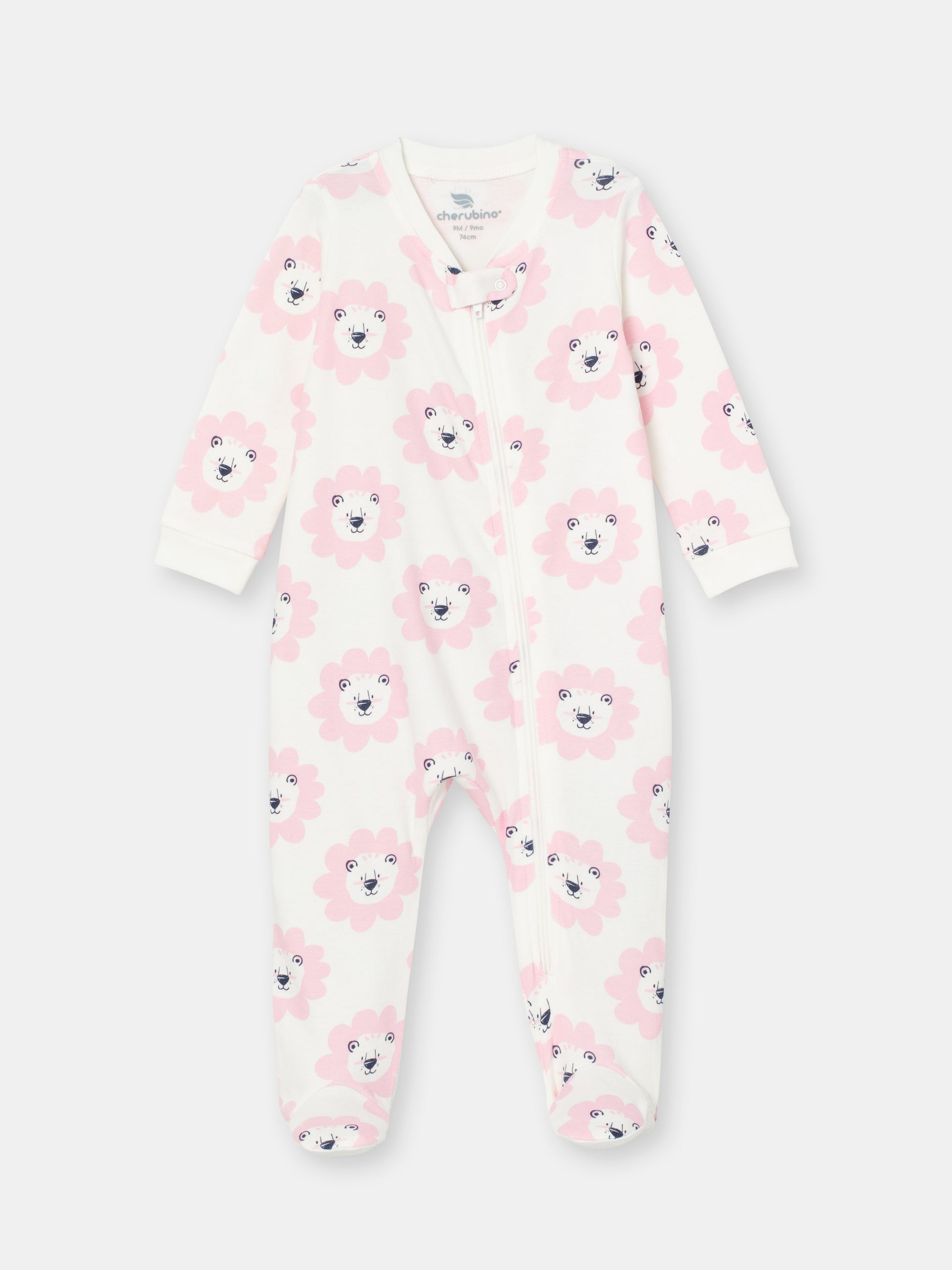 On-the-Go Zipper Jumpsuit with Non-Slip Footies in (Floral Lion) Pattern - White