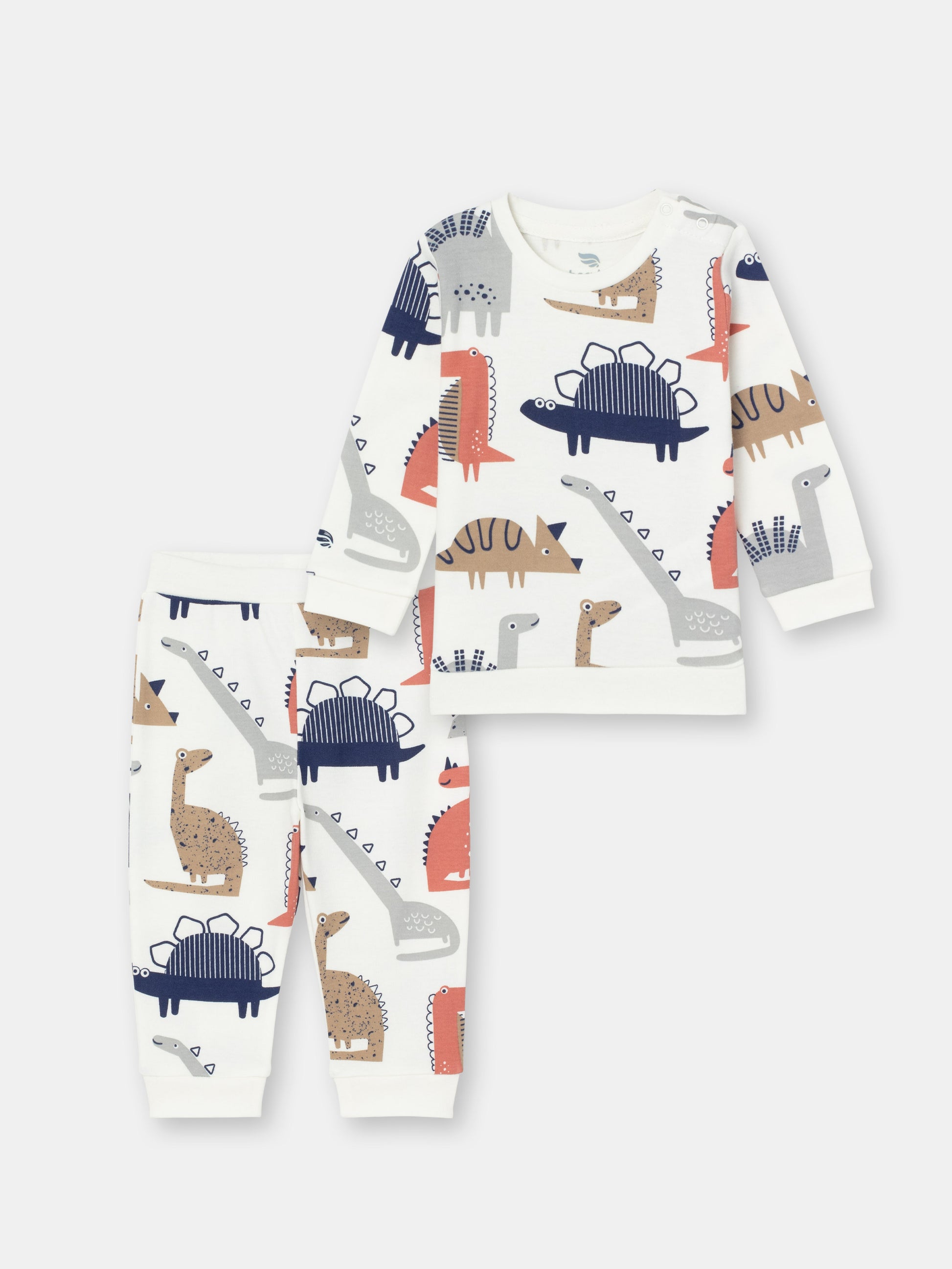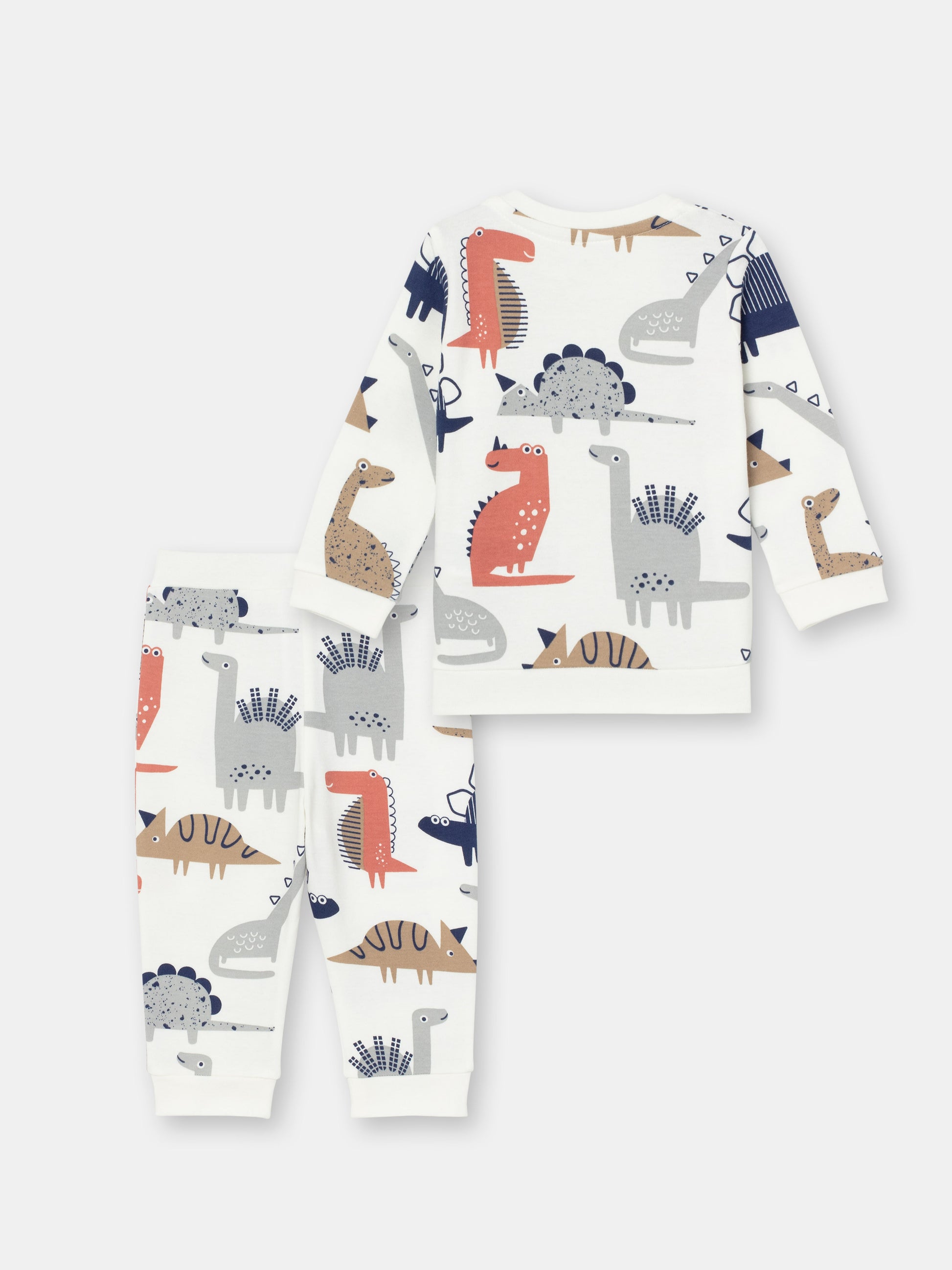 Two Piece Long Sleeve Top & Joggers Set in (Dino Party) Pattern - White